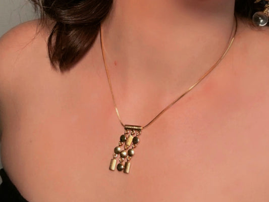 Gold Napier Necklace, Vintage Gold Designer Necklace with Abstract Geometric Tassel Pendant