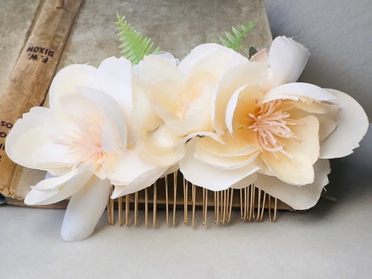Handmade Flower Hair Comb, Ethereal Cream Silk Floral Bridal Hair Accessory for Wedding