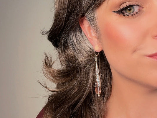 Champagne Flower Earrings, Whimsical Handmade Lily Dangle Earrings with Antique Bronze and Crystals