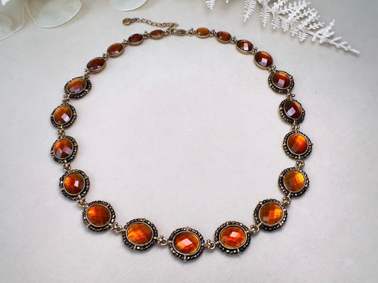 Vintage Amber Necklace with Beaded Bronze Border, Liz Claiborne 80s Designer Vintage Jewelry