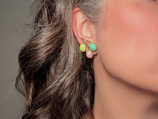 Vintage Candyland Earrings, 70s Pastel Clip Ons in Pink Mint and Chartreuse, Colorful Spring Jewelry