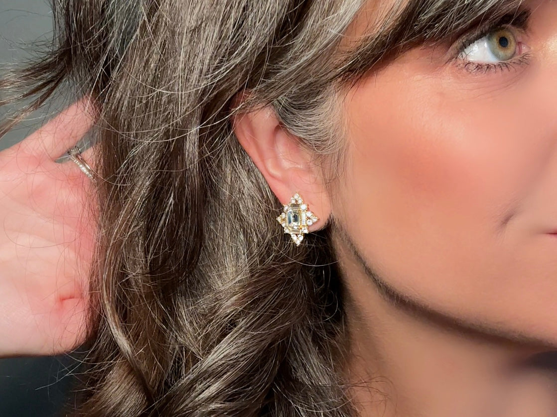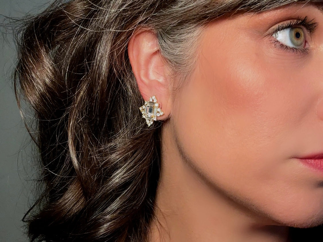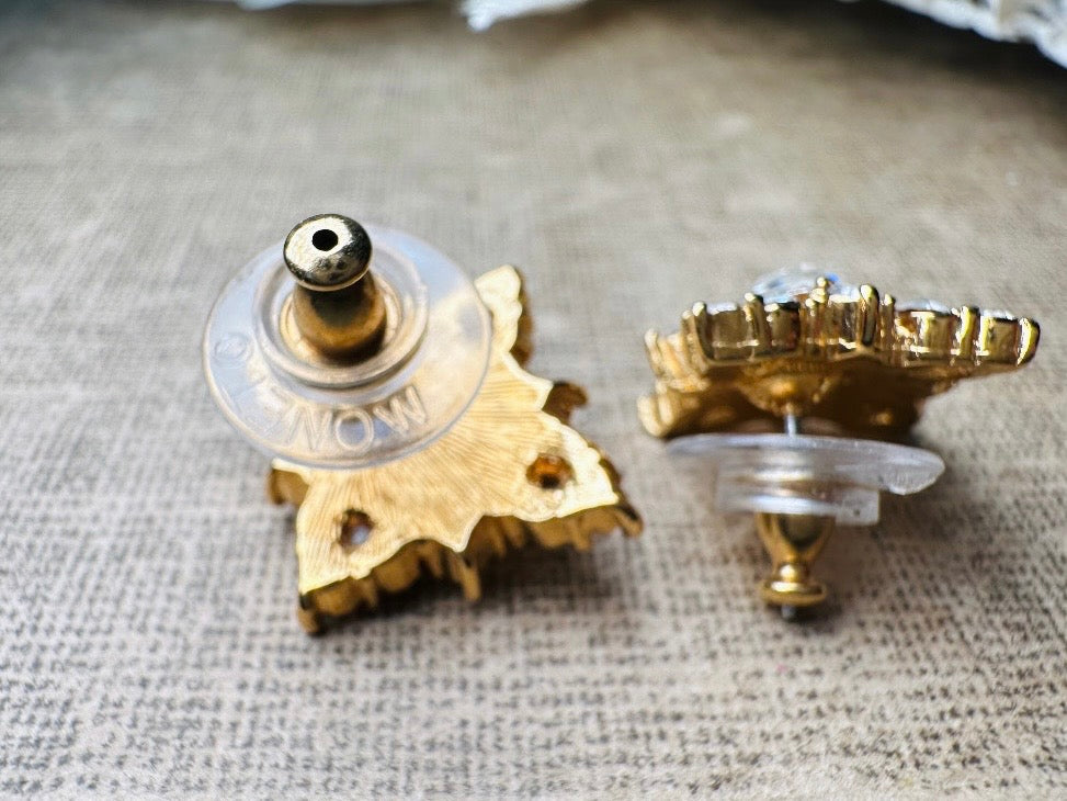 These art deco crystal earrings are a stunning pair of vintage Monet Maltese Cross rhinestone earrings. Featuring crystals in a variety of sparkling cuts- emerald, round and baguette- these incredible pierced post earrings have an understated elegance, perfect for cocktail hour, or a bridal look. These are post/stud style for pierced ears, from the 1980s. These are just the right size to let you shine. In excellent condition, no missing stones or wear to note, with original signed Monet backs. Please view all pics and let me know if you have any questions at all.