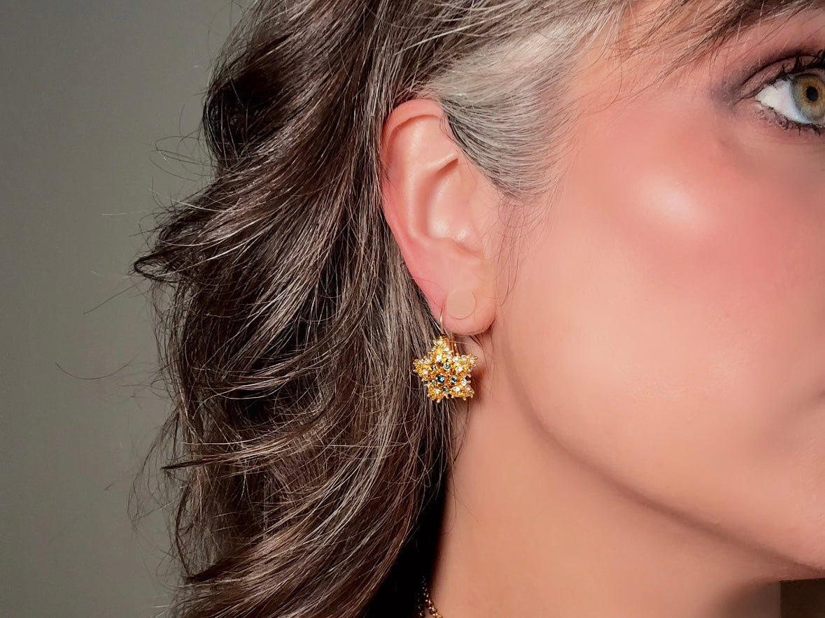 These vintage celestial gold star earrings with blue and diamond crystals are extraordinary. A signed designer pair by Nolan Miller, they are a perfect pair of dazzling earrings for the holiday season and make a beautiful gift. Featuring a dimensional gold star with tiny prong set crystals in diamond and deep sapphire blue. They sparkle in the light so beautifully. Pierced leverback style. Please be sure to view all photos and let me know if you have any questions. These exquisite vintage earrings will arrive lovingly gift wrapped and ready to gift!