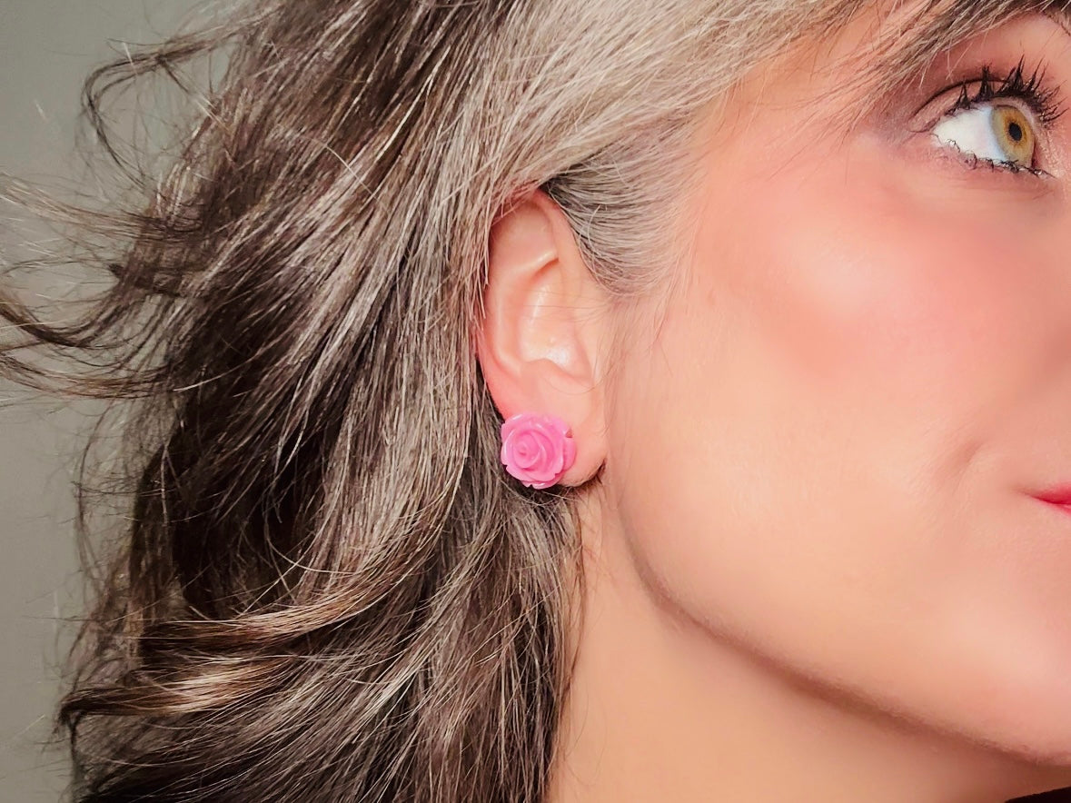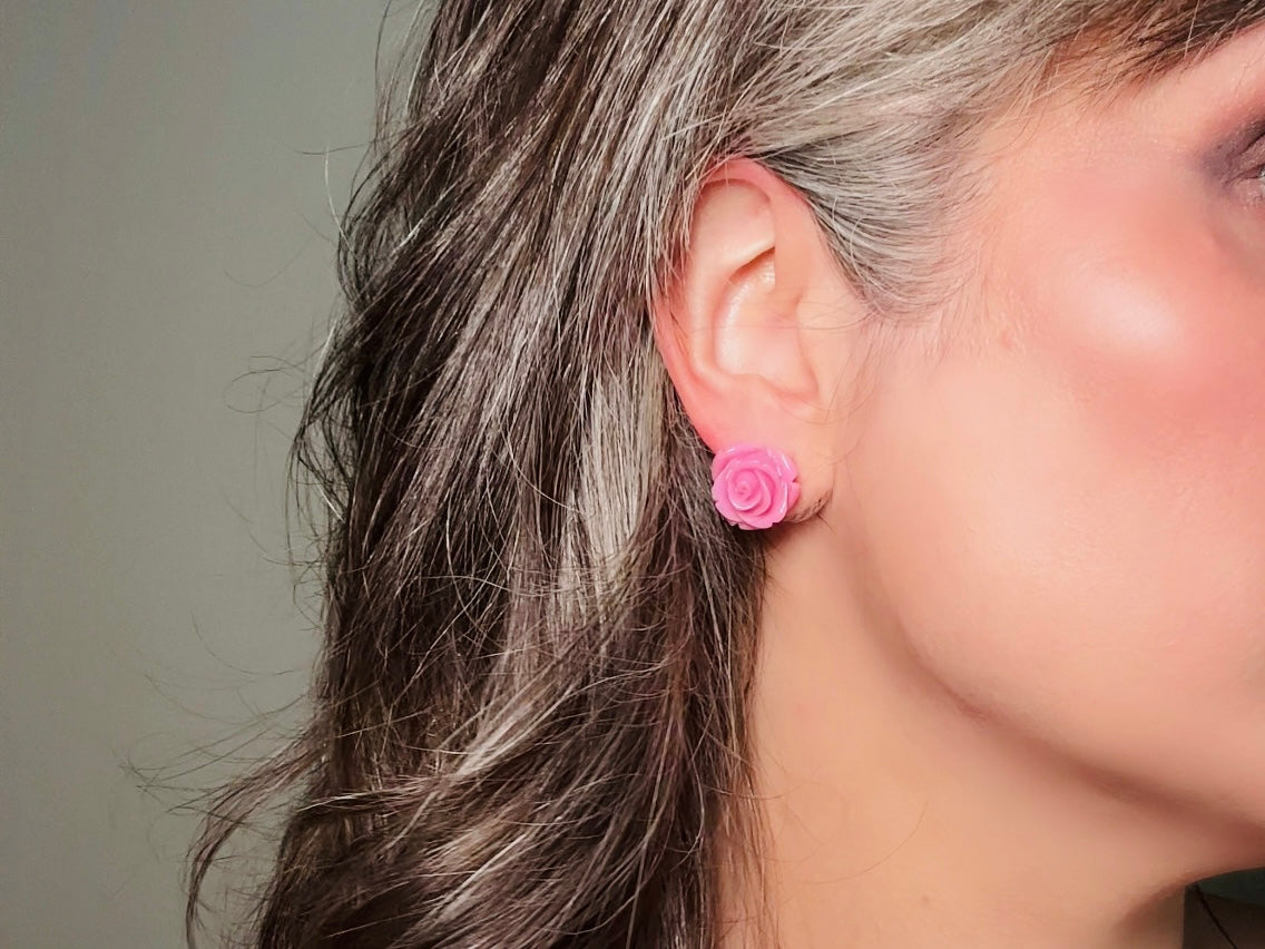 These rose stud earrings in lilac purple are a dreamy set of earrings. These large rose earrings feature blossoming resin cabochon rosettes with hypoallergenic posts and backs. These romantic nature inspired earrings are a beautiful shade of purple, with the garden roses in full bloom. This dreamy shabby chic shade and timeless rose silhouette makes these post earrings a perfect choice for everyday wear.
