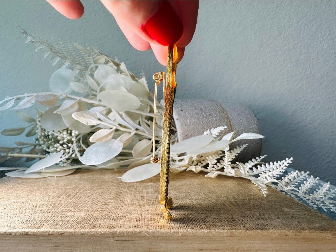 Dimensions: Pin measures 3" x 1.5" Please see additional photos for size reference.