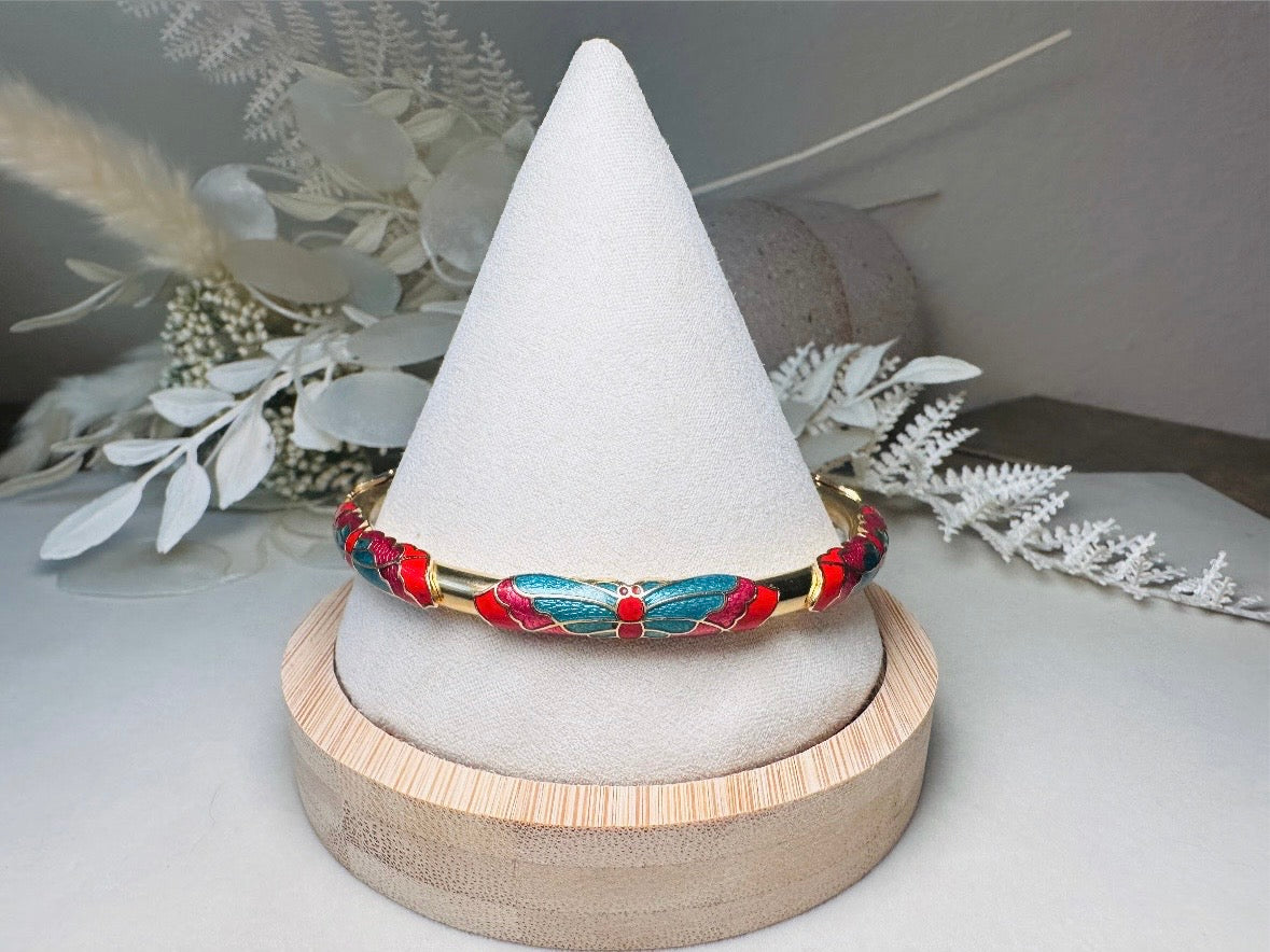 Vintage Cloisonne Skinny Butterfly Bracelet in Blue and Red