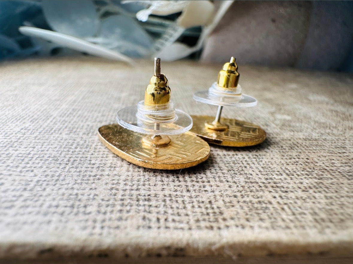These vintage floral cloisonné earrings are so lovely. These romantic dainty earrings feature a teardrop shape and colorful iris flowers in magenta and peach with leafy greenery. The colors used are just gorgeous together, pearlized peach, pink and magenta all highly detailed in shimmering gold. Pierced style. In excellent vintage condition.
