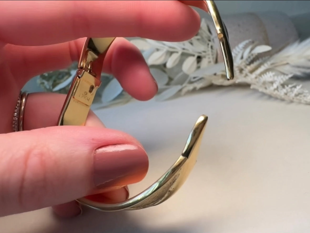 Vintage Monet Gold Bracelet, 1970s Small Gold Hinged Clamper Bracelet