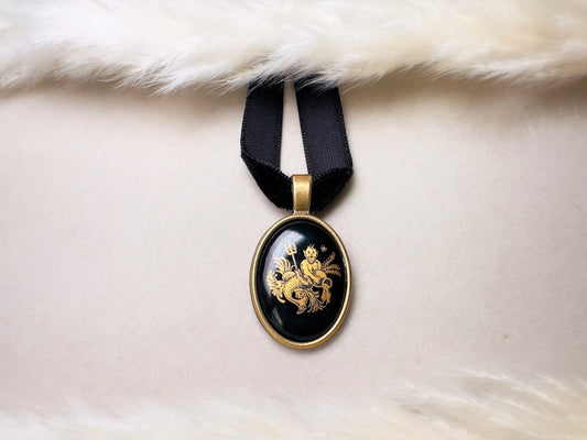 Aquarius Zodiac Necklace, Handmade Black Velvet Choker with Vintage Glass Astrology Cameo