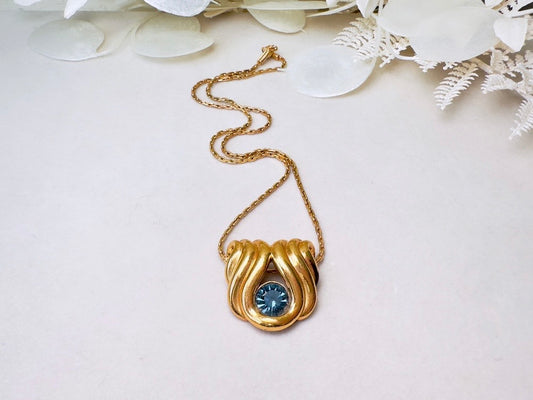 Vintage Nolan Miller Slide Pendant Necklace with London Blue Topaz Crystal, 16" Necklace for Layering